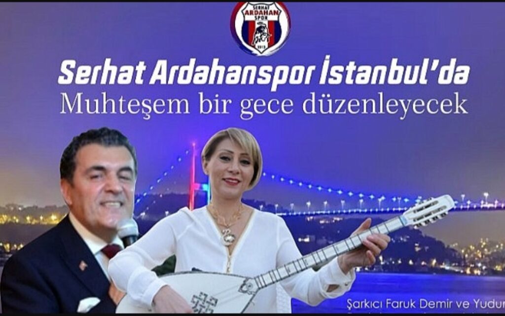 Serhat Ardahanspor Kulübüne katkı için yapılacak “Birlik, Beraberlik ve Destek Gecesi” için Sanatçılar olarak Ardahan Belediye Başkanı Faruk Demir ve THM Sanatçısı Yudum sahne alacak. Gecenin sunuculuğunu Hakan Kılıç ve Çiler Boylu yapacak. Ataşehir Sheraton Otel’de yapılacak Serhat Ardahan Spor kulübü gecesi için biletler 10 Bin TL olacağı öğrenildi.